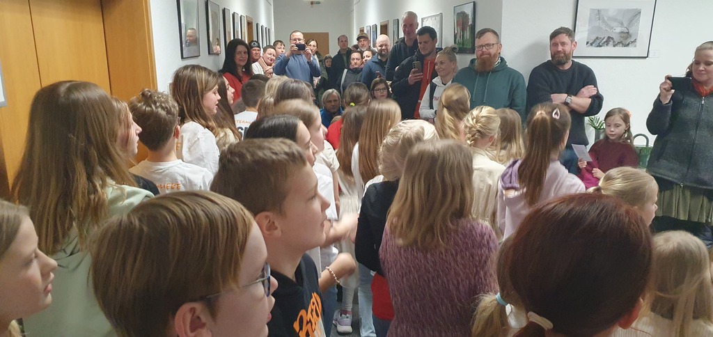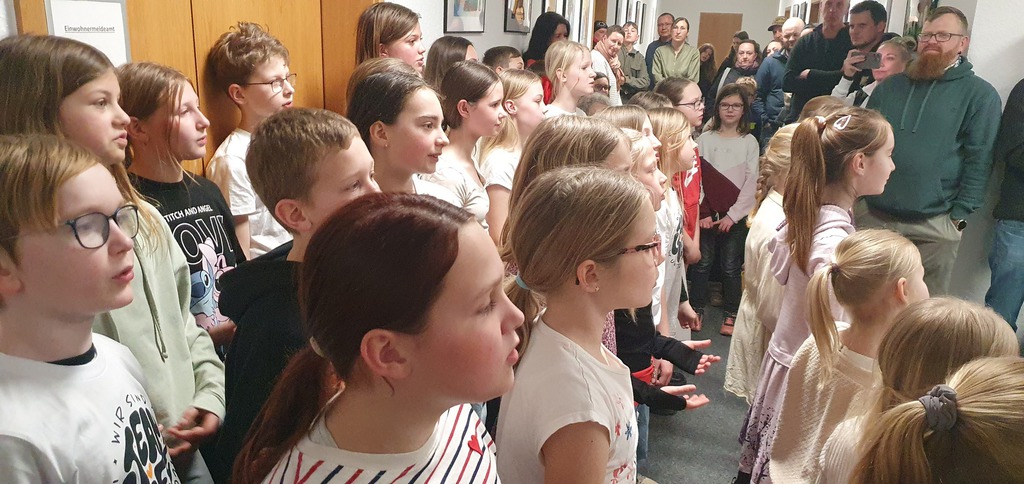 Kinder der Klassen 4 bis 6 begleiteten die Eröffnung mit einigen Chor-Liedern.