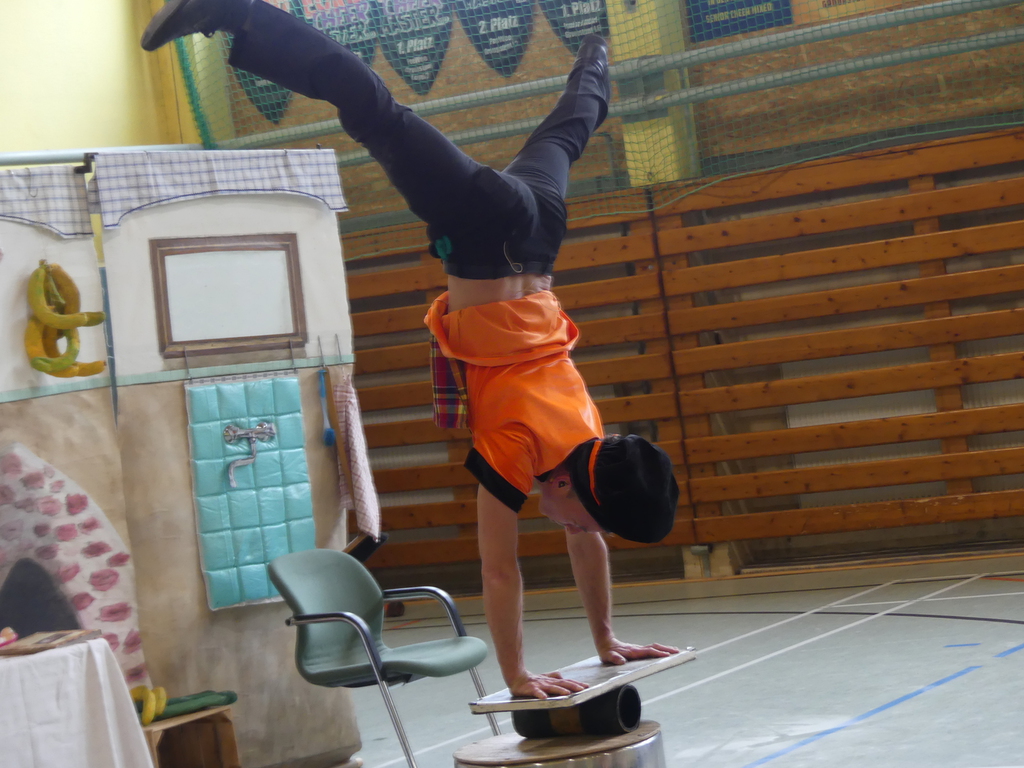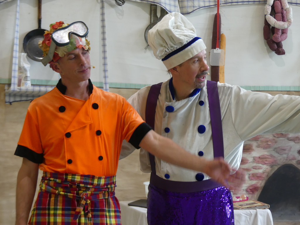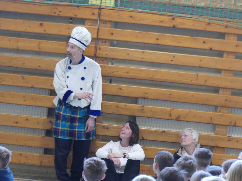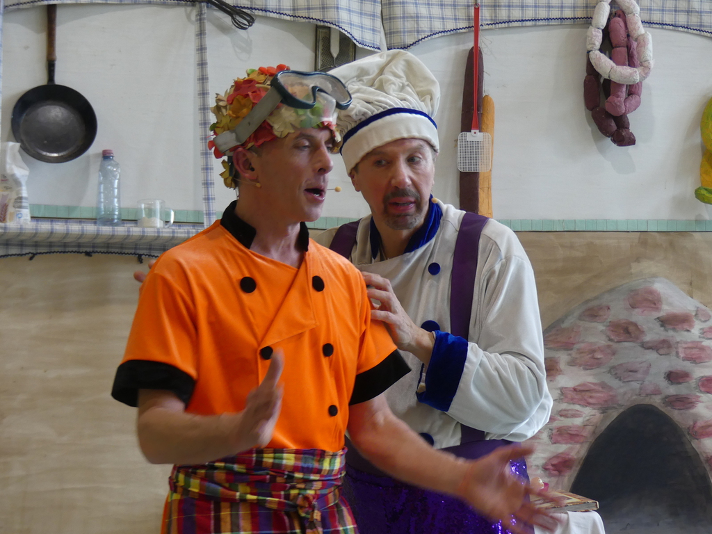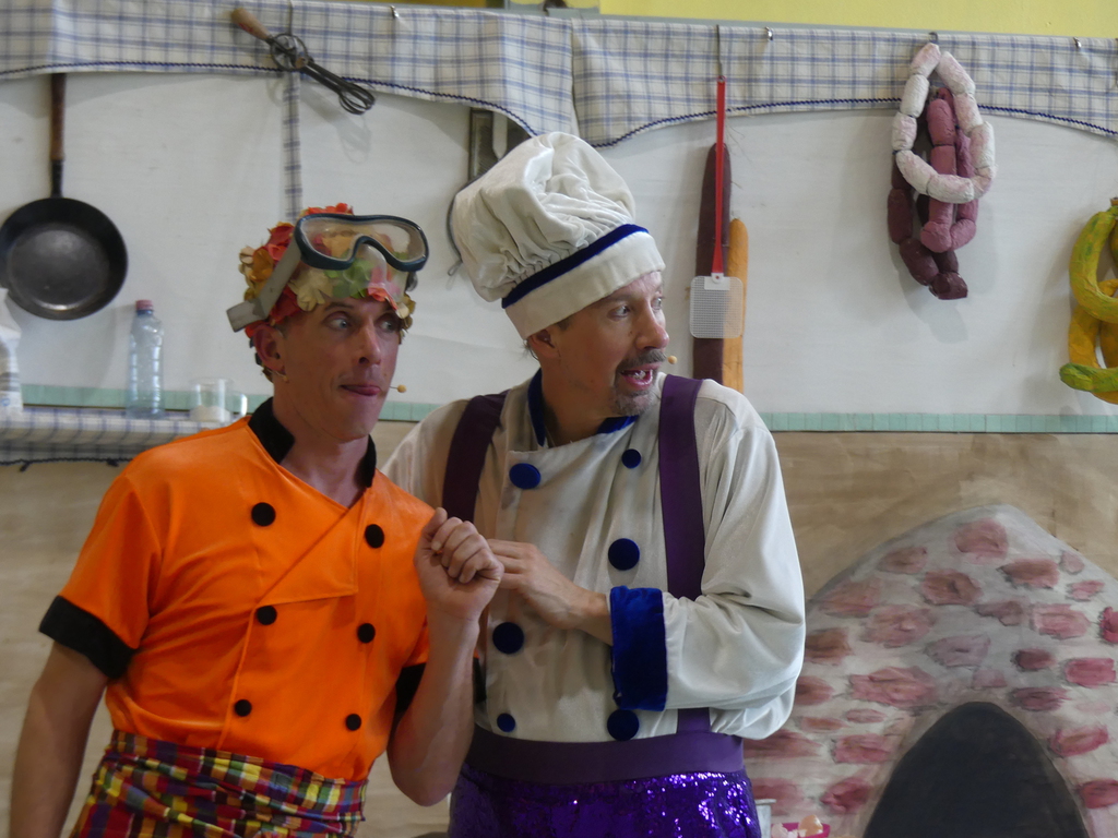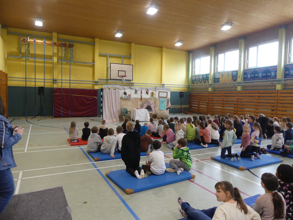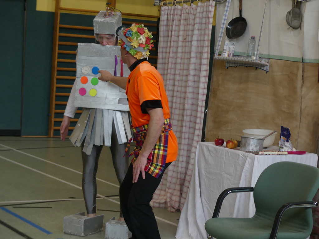 Am Dienstag, 24.3.2026 trat das Theater "Coq au Vin" mit seinem Stück "Der furiose Küchenzirkus" in der Sprothalle der Grundschule Rehfelde auf.